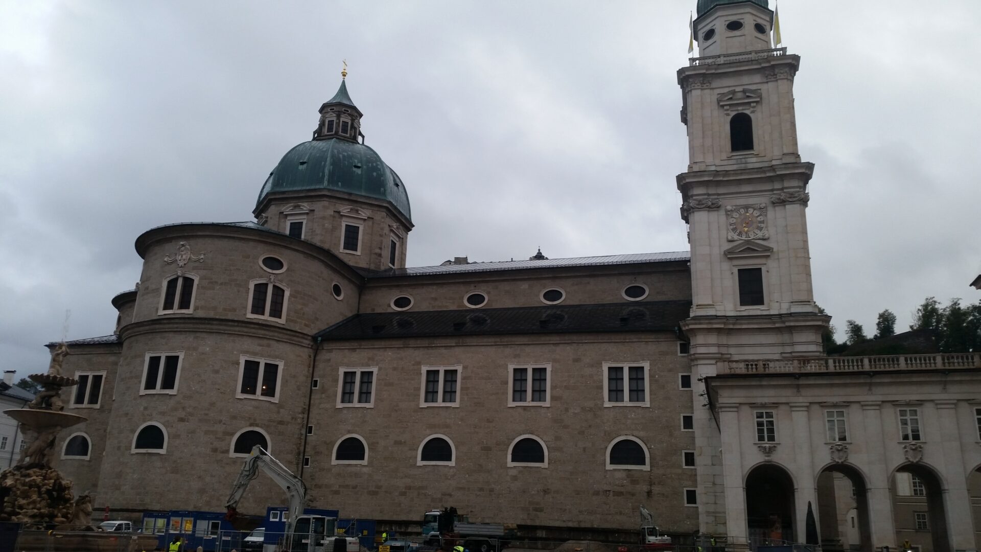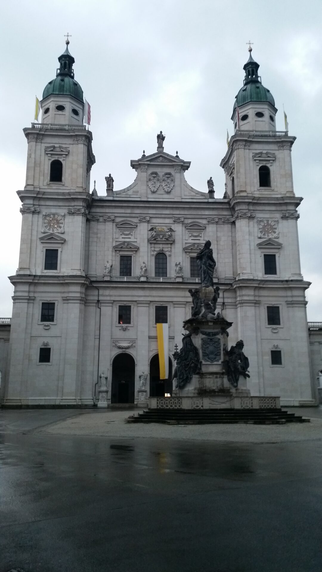 Zuerst suchte ich mir den „Salzburger Dom“. Er liegt im Zentrum der Altstadt und ist ein Barockbau mit der Länge von 101 Meter und das Querschiff misst 69 Meter, die Höhe ist 266 Fuß, 1 Fuß = 30, 48 cm also 81 Meter. Gebaut wurde er 1614.