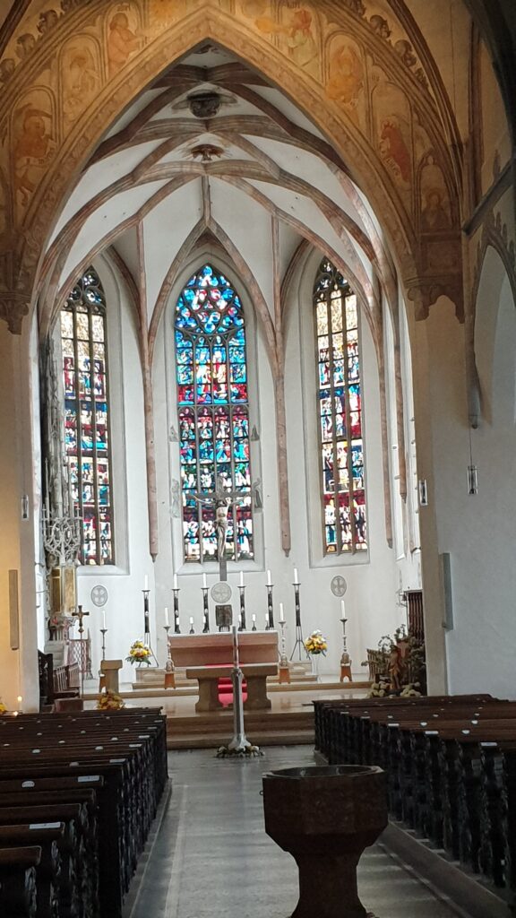 Was mir besonders in der Kirche aufgefallen war, ist daß der Boden zum Altar hin abfällt, sodaß alle den Priester besser sehen können.