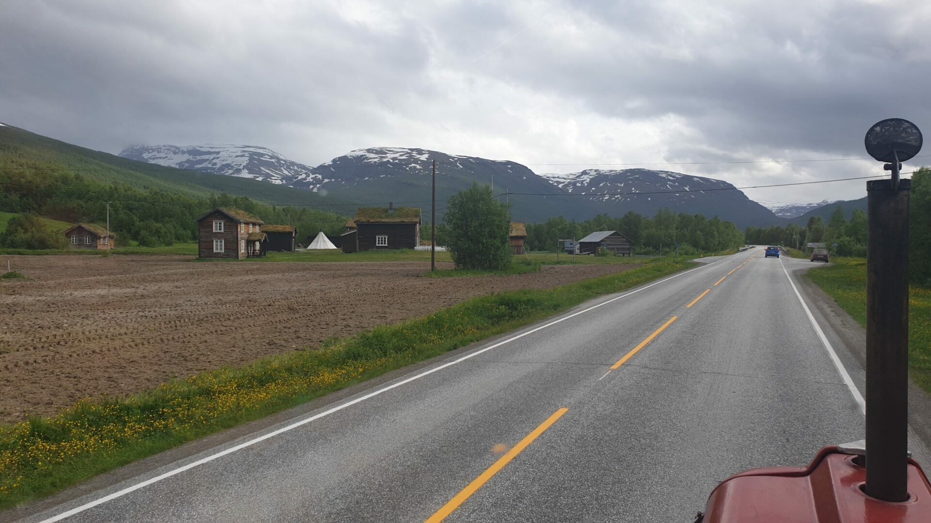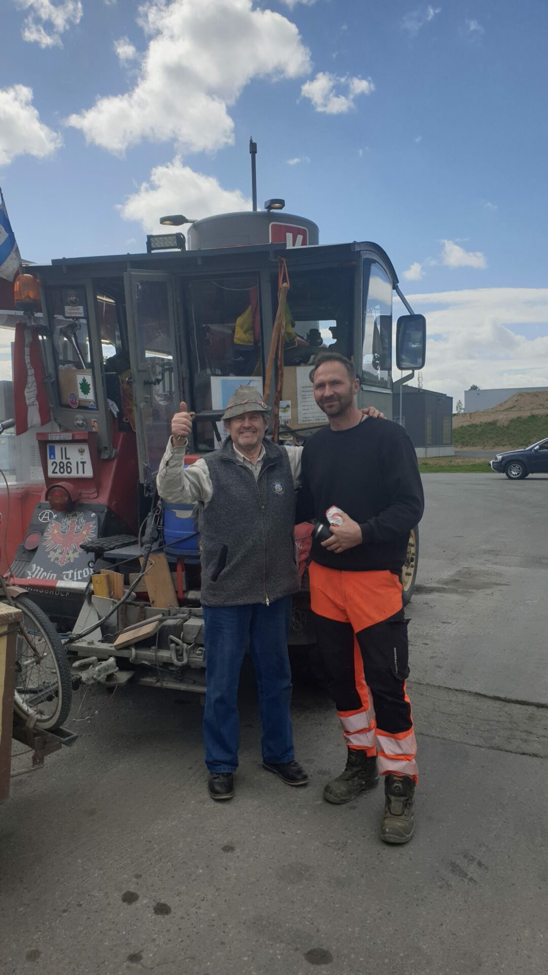 Nachmittag mußte ich ⛽ tanken und dabei habe ich einen netten Mann, den „Kai“, kennengelernt, der aus Deutschland kommt und jetzt hier in Norwegen als LKW Fahrer arbeitet. Kai gab mir den Tip, daß man mit dem Traktor billiger tanken kann. Es gibt in ganz Norwegen für Traktoren, LKW und Baufahrzeuge eine eigene Zapfsäule, die meistens abseits von den anderen Zapfsäulen, sind. Das habe ich natürlich gleich ausgenutzt.