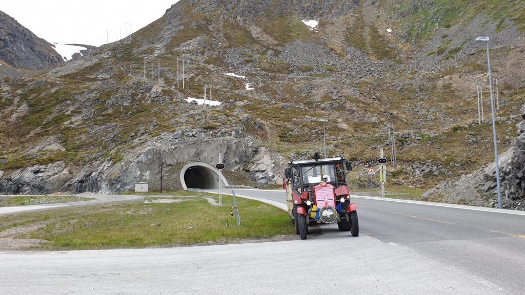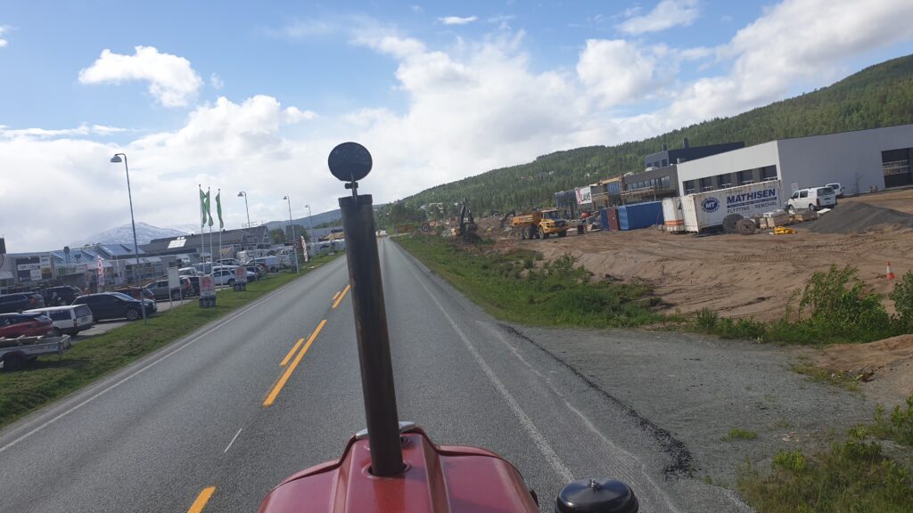 Nachmittag mußte ich ⛽ tanken und dabei habe ich einen netten Mann, den „Kai“, kennengelernt, der aus Deutschland kommt und jetzt hier in Norwegen als LKW Fahrer arbeitet. Kai gab mir den Tip, daß man mit dem Traktor billiger tanken kann. Es gibt in ganz Norwegen für Traktoren, LKW und Baufahrzeuge eine eigene Zapfsäule, die meistens abseits von den anderen Zapfsäulen, sind. Das habe ich natürlich gleich ausgenutzt.