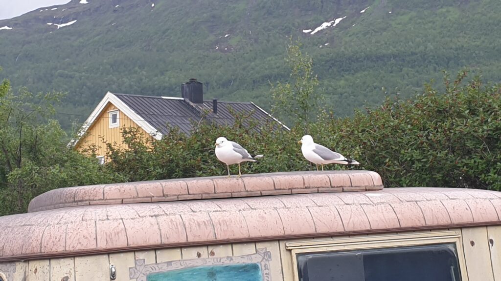 Ich bin gut in Bjerkvik angekommen und von den neugierige 2 Mövenpick begrüßt worden. 🤣👍