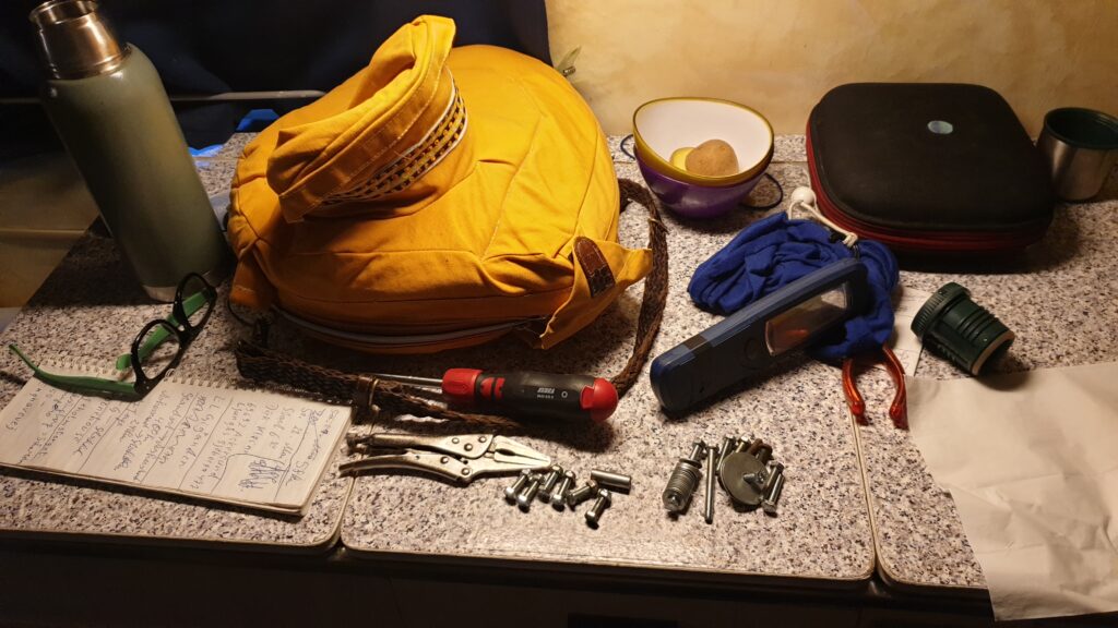 Wiedereinmal sehrgut ausgeruht um 4:00 musste ich einige Reparaturen in meinem alten Hotel machen. Die Werkbank war übervoll.
