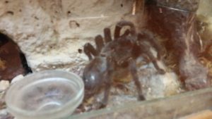 Wußten sie schon, daß diese Spinne leicht reizbar ist und setzt ihre Brennhaare zur Verteidigung ein. Einen Angreifer kann die Spinne auch mit erhobenem “ Carapax “ (Körper) und gespreitzten Beißklauen entgegentreten und so eine Imponierstellung einnehmen. Sie lebt in Kolumbien, Ostbrasilien und im Parahyba Gebiet. Die Nahrung ist Insekten und kleine Mäuse.