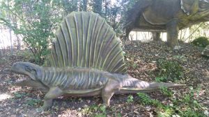 Der “ Dimetrodon “ ( zwei Maße von Zähnen ) er lebte vor etwar 299 bis 272,5 Millionen Jahren im “ Cisuralimu “ (frühes Perm). Die Verbreitung war in dem US Bundesstaat Texas und Oklahoma sowie in Europa. Die Nahrung war Fleisch und die Größe mit Schwanz 3,5 Meter.