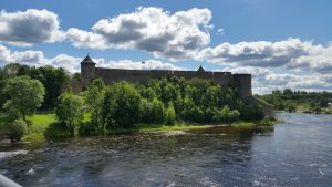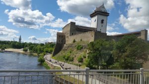 Heute bin ich um 8.00 zu der Zollabfertigungsbuchungsstelle gafahren. Dort war ich erst um 10.05, mach nichts, dann hatte ich nur 20 Minuten Zeit bis zum Grenzübergang, wo ich dann 1 Stunde vor dem Schranken stand. Da ist zuerst der estnische Zoll, den ich um 12.30 verlassen habe. Dann ging es über die Narwa wo ich 2 Festungen sah. Eine lenks und eine rechts des Flusses.
