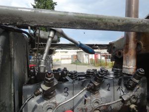 Nach dem Frühstück kontrollierte ich den Kühlerwasserstand und mußte feststellen, daß 5 Liter Kühlwasser fehlen. Das war mir zu viel und ich füllte das Wasser nach und liess den Traktor warmlaufen. Dann sah ich, daß beim vorderen Zylinderkopf das grüne Kühlerwasser herausdrückte. Gleich holte ich meinen Freund “ Dean “ den Mechaniker, und der bestetigte mir den Schaden.