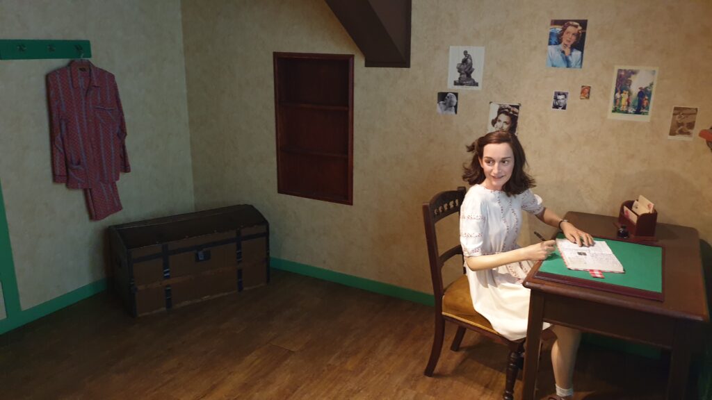 Es „platterte“ die ganze Nacht und trotzdem hatten wir gut geschlafen. Wir fuhren um 9:30 in die Stadt und zeigte meiner Frau die Statue von Anne Frank. Danach schlenderten wir in Richtung Wachsmuseum und plötzlich sah meine Frau das Sexmuseum und da wir soetwas noch nie gesehen haben gingen wir hinein. 🤣🙊🙉🙈
