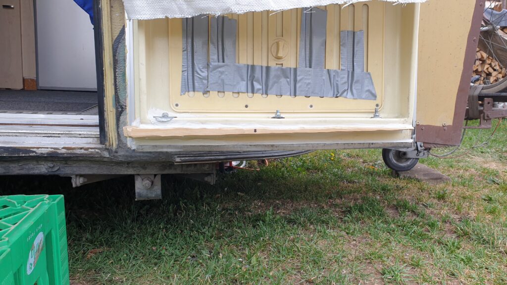 Den Unterboden vom Wohnwagen habe ich fertig gemacht und ich konnte die Tür gegen Mäuse absichern denn ich musste sie anheben und da endstand am Boden eine großer Spalt.
