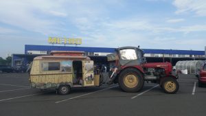 Ich fragte einen Einheimischen wo eine Traktorwerkstätte ist und seine Frau guggelte gleich und ich bekam die Adresse. An dieser Adresse angekommen, waren nur Wohnhäuser gewesen und keiner wußte von einer Werkstätte.  Dann fragte ich bei 3 Autowerkstätten und die wollen keinen alten Traktor reparieren. Der 4 dann, das war eine Kleine “ Bude “ der war sofort mit dem Werkzeug hier und wollte es auf der Straße gleich machen, aber er kam nicht weit und ich erklärte ihm was er machen muß, dann sprach er mit seinem Boss und sagte : morgen um 09.30 hier sein !!