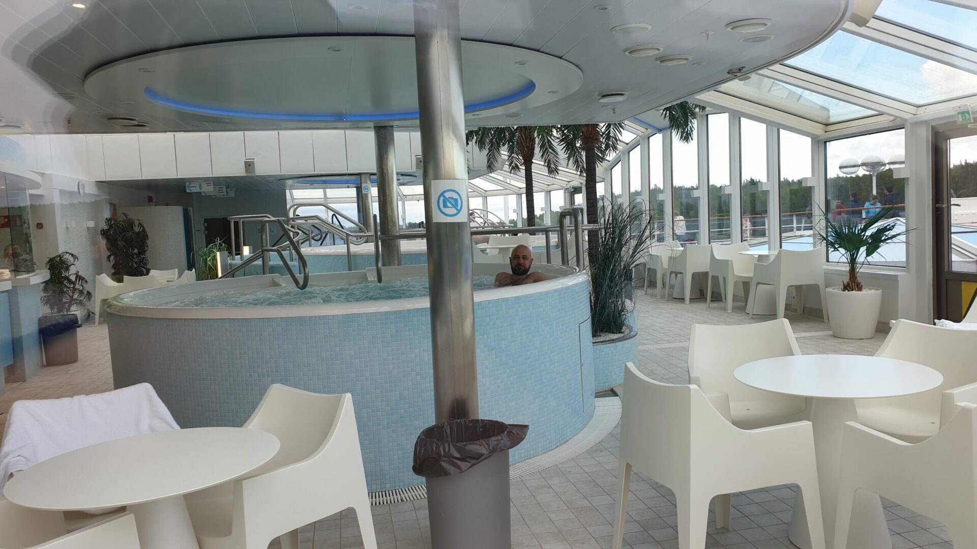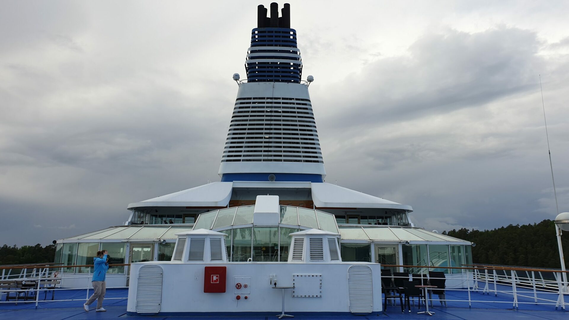 Das ist eine sehr luxuriöse Fähre mit Einkaufsstraße, live Musik, Casino, Sauna, Kino … ich glaube, daß ich garnicht alles sehen konnte. Die Aussicht in den 1. 2 Stunden waren herrlich. Das Schiff fuhr zwischen zahlreich Inseln durch bis es dann das freie Meer erreichte. Ich konnte mich nicht sattsehen. Jetzt kann ich wieder mit € bezahlen.