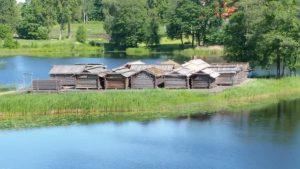 Hier bin ich bei der Wasserburg von Äraisi. Das ist eine, in ganz Europa bedeutende Rekonstruktion einer lettgallischen Wohnstädte auf Wasser und der einzige Ort in den baltischen Staaten, wo man das Leben der Menschen vor mehr als 1000 Jahren kennenlernen kann.
