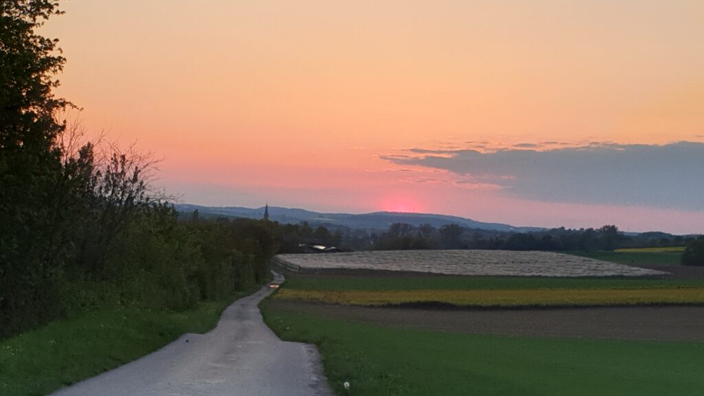 Um 12,40 gings weiter über Grünkohl nach Cappel und dann ging es hügelig weiter … das war viel schöner und es kamen die Rapsfelder und Weinberge , dann kam Karlsvorstadt, Hölzern, Neckarsulm und endlich Heilbronn.