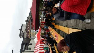 Zwischen diesen versteckten Sehenswürdigkeiten war ich um 14.00 am „Fischergries — Genussmarkt“ wo eine „zünftige Musi“ spielte ( der Ebbser Kaiserklang ) und ich konnte Original ungarische Speisen essen. Dort traf ich Martina mit ihren 2 lieben Kindern. Durch das schlechte Wetter waren wenig Leute hier.