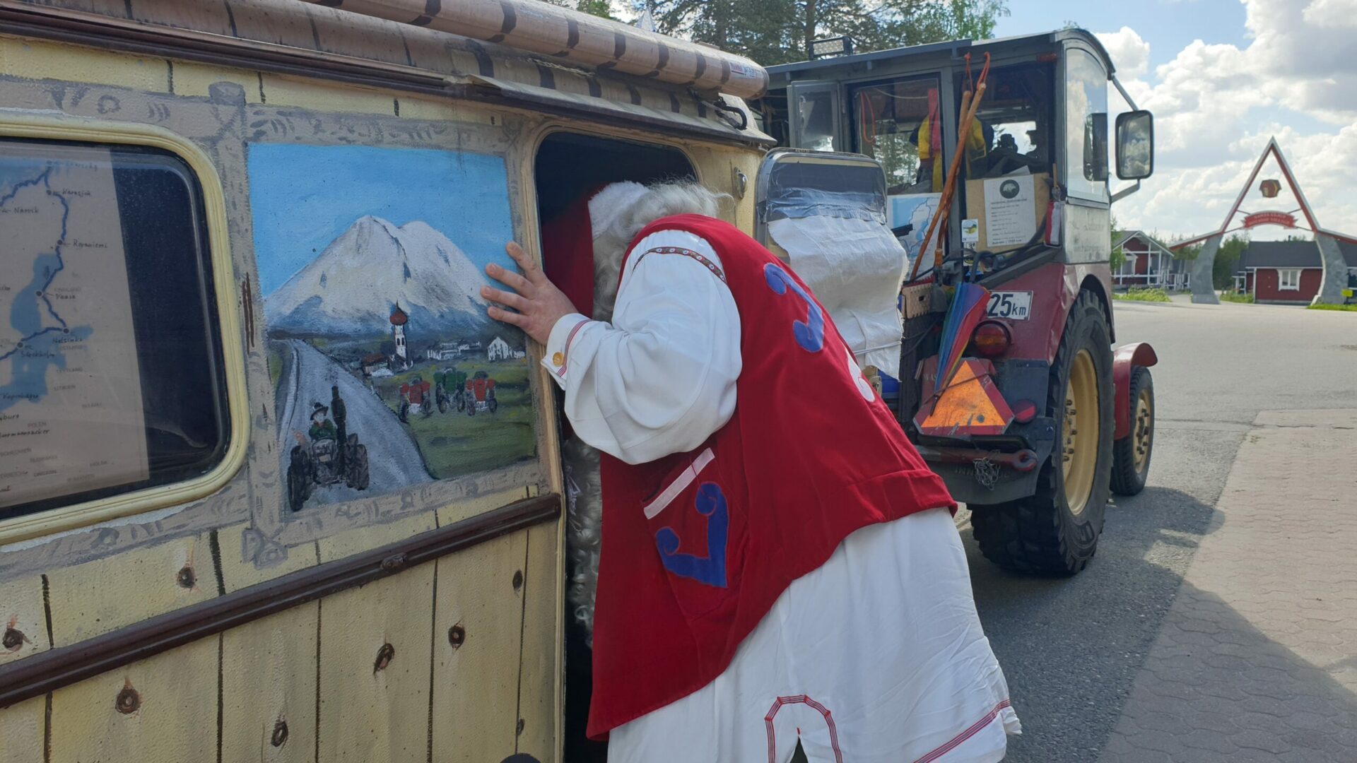 Jetzt geht’s zum heutigen Höhepunkt. Es ist das Weihnachtsdorf Rovaniemi und dort ist das ganze Jahr Weihnachten. Als ich zum Weihnachtsmann kam, hätte 1 Foto mit ihm € 45,- gekostet. Ich sagte ihm woher ich komme, dann antwortete er daß er schon im Casino Seefeld und Brenner gespielt hat. Dann zeigte ich ihm mein Gespann, dann fragte er ob ich Schnaps für ihn habe, dann kosten die Fotos nichts. Gesagt getan 🤣