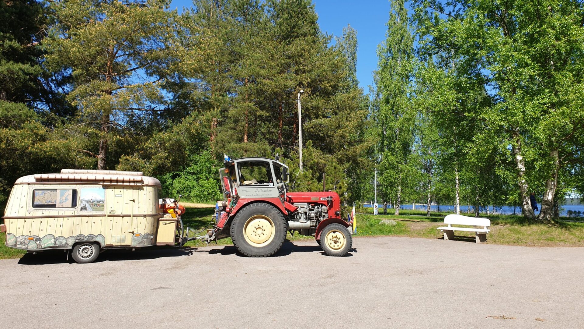 Mein Schlafplatz war heute zwischen 2 Seen, die auf ca. 100 M. Seehöhe sind. Das Wasser hat jetzt 14 Grad. Ein Finne war Baden und es sagte, daß er alle Tage hier schwimmt.