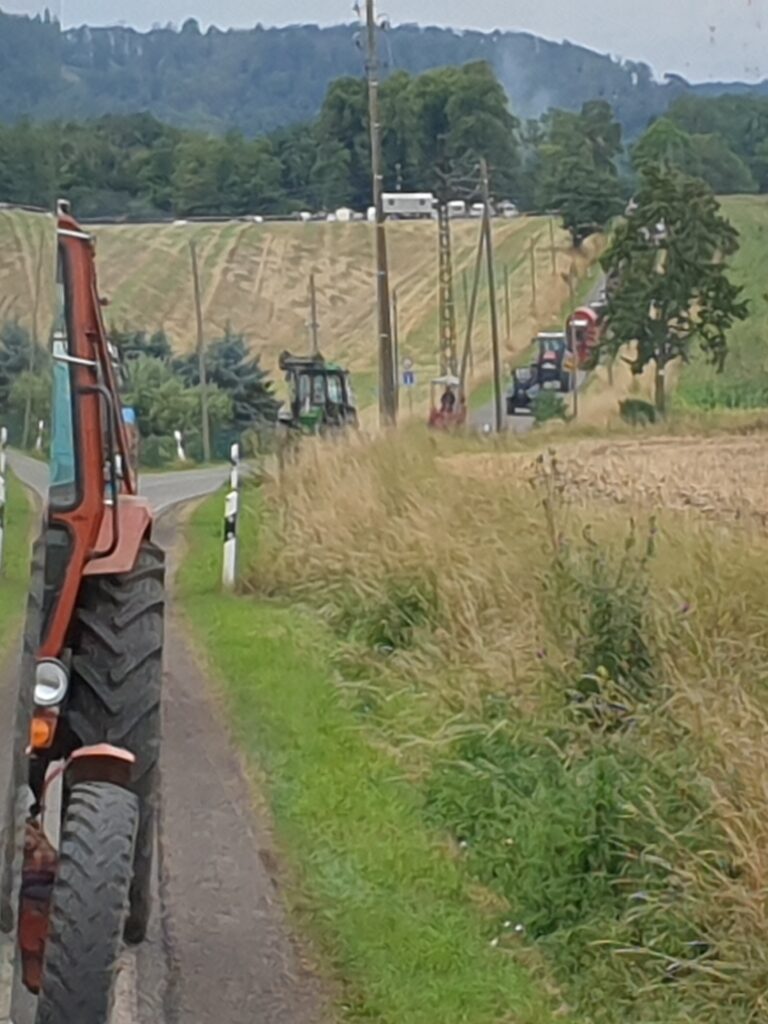 Um 13:00 fuhren wir eine schöne Runde. Heute waren es ca 63 Traktoren und 17 Wohnwagen.