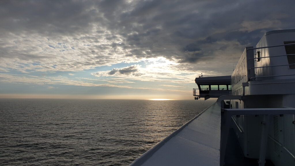 Ich habe wie immer sehr gut geschlafen trotz fibrieren des Schiffes. Um 5:00 ging ich die 1. Runde und teilweise waren noch übernächtige und kojenlose Gäste zu sehen. Um 10:00 ging dann der „Rummel“ los. 🤣 In Norwegen ist die Zeit um 1 Stunden früher.