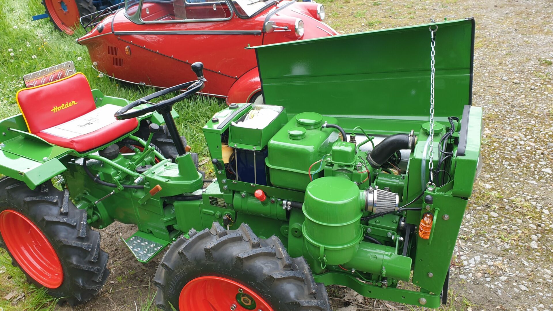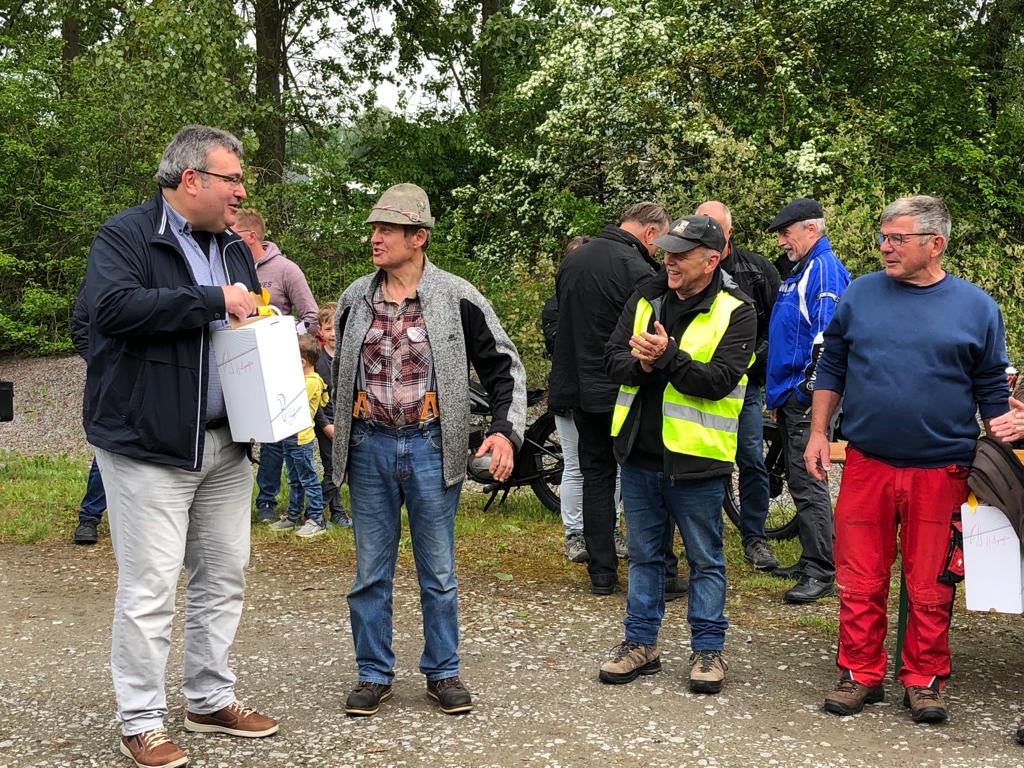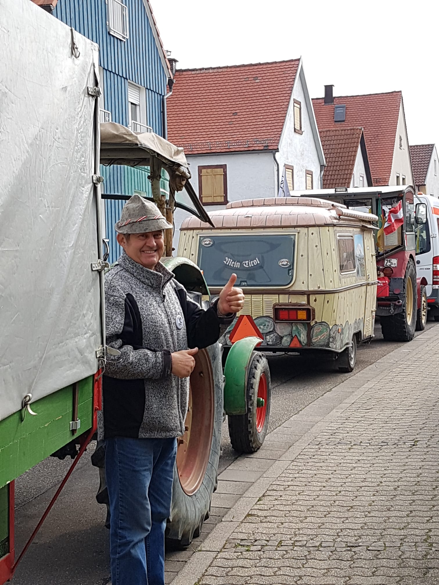 Am Festplatz waren ca 50 Traktoren . Der Herr Bürgermeister Mathias und Vereinsvorstand Hans haben eine wunderschöne Ansprache gehalten. Danach gab es Geschenke und Pokale für : Francis & Marie Therecs und für mich.