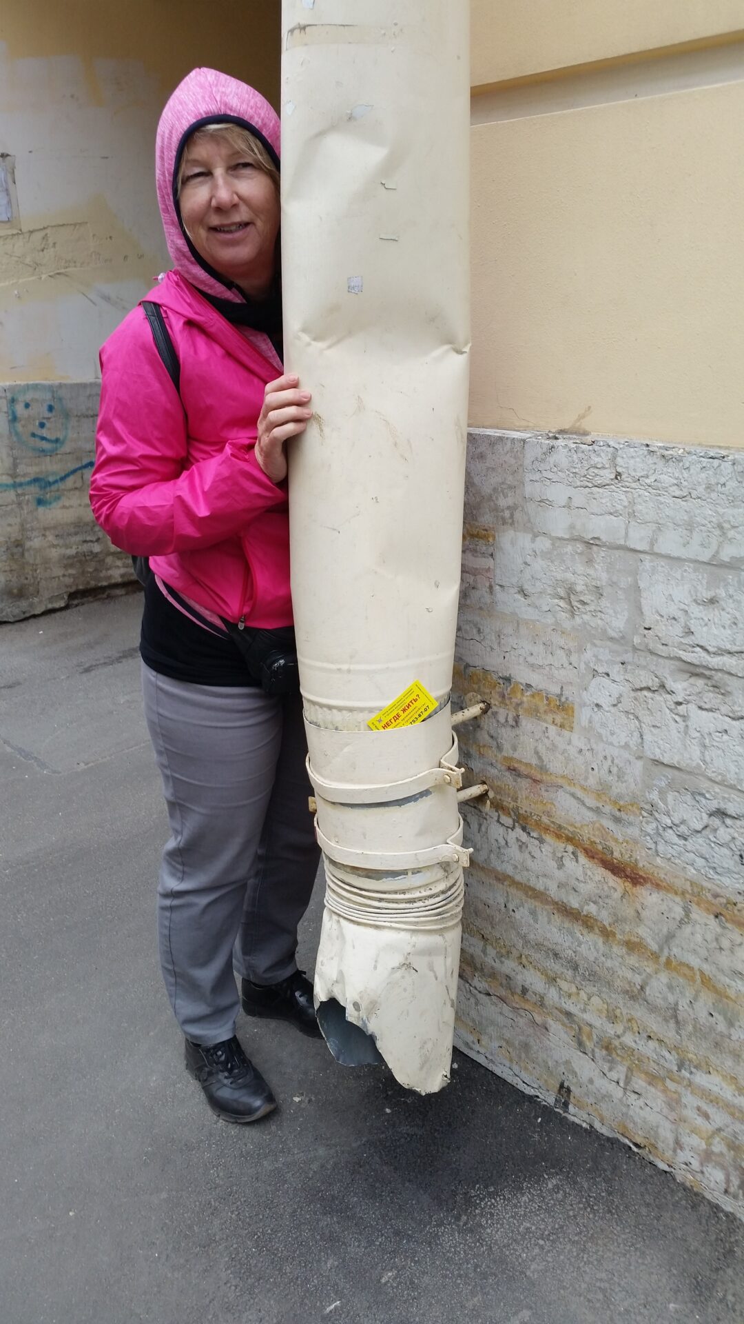 Als ich das erste mal durch die Stadt ging, sind mir sofort die sehr dicken Dachrinnen aufgefallen, die haben einen Durchmesser von 25 Zm. Die meisten davon sind beschädigt.