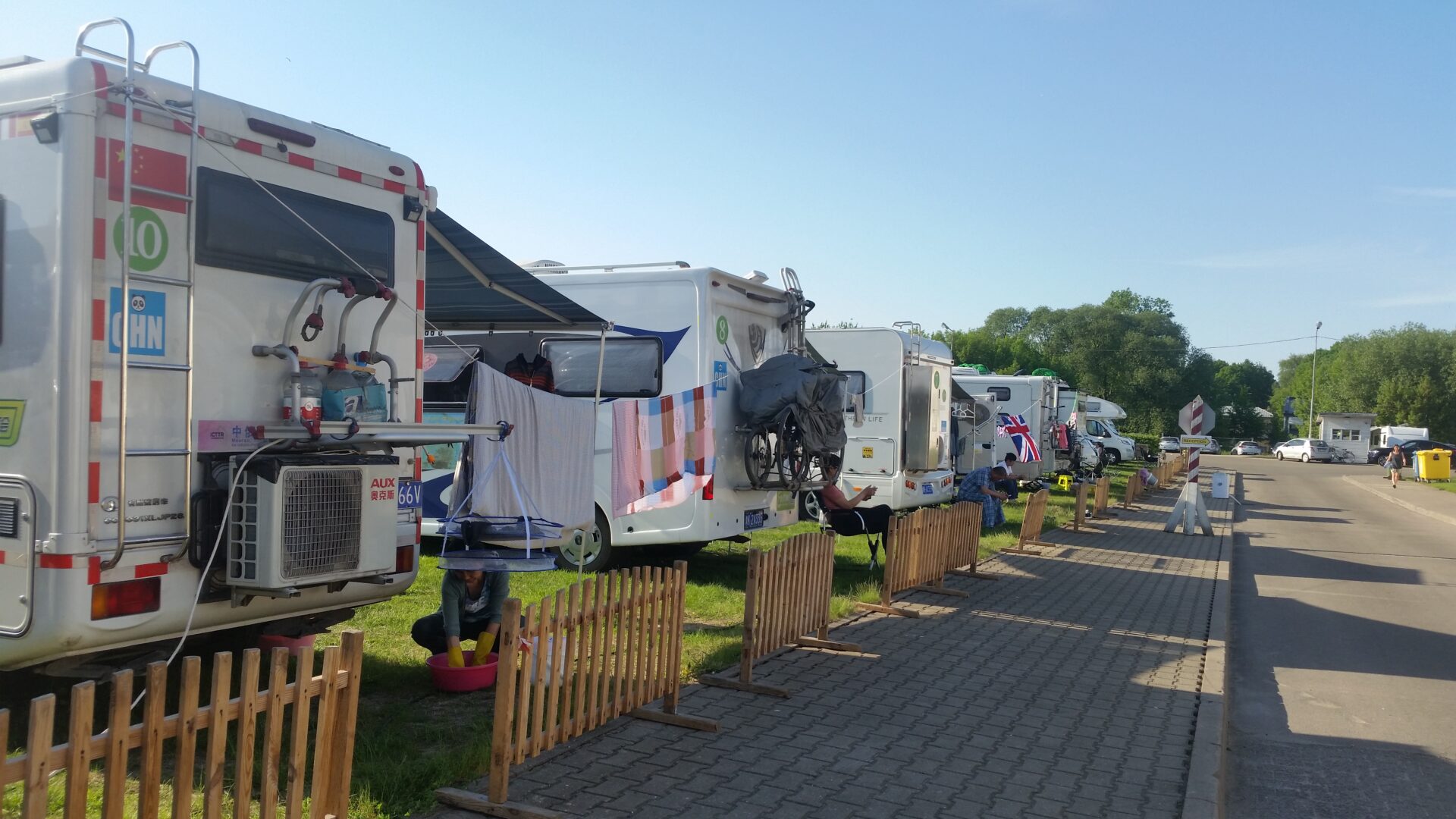 Soeben kamen 2 voneinander unabhängige Gruppen herein. Eine Gruppe sind 11 Chinesische Wohnmobils. Sie sind sehr freundlich und in kürze bin ich umgebe von den Chinesen. Die jüngeren können gut englisch. Ich habe sogar einen Glücksbringer bekommen. Von China kommend fahren sie weiter durch Europa von einer Hauptstadt zur andern.