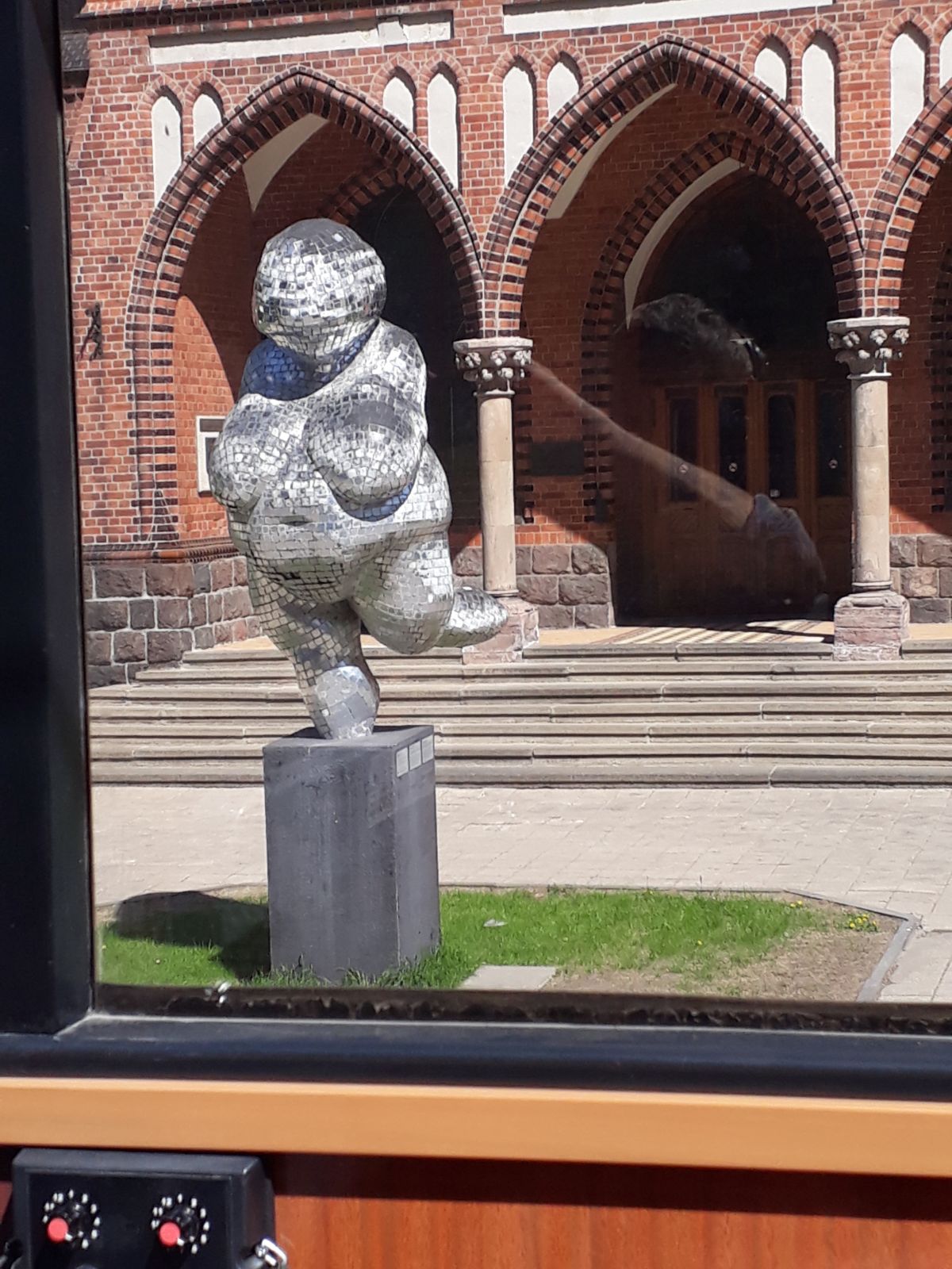Das besondere Kunstwerk steht hier als Nachbau … es ist die Wenus von Willendorf in Großformat. Das Original ist 30.000 Jahe alt und wurde in Willendorf bei Wien gefunden.