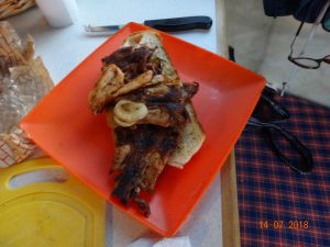 Da erspar ich mir heute die “ Schölferler “ . Es war Hühnerfleisch mit Pute und Zwiebel mit scharfen Paprik drauf. Das hat die Nachbarin sogar mir zum Wohnwagen gebracht. Das ist selten normalerweise darf sie das nicht sonder das bringr nur ein Mann zu einem Mann.
