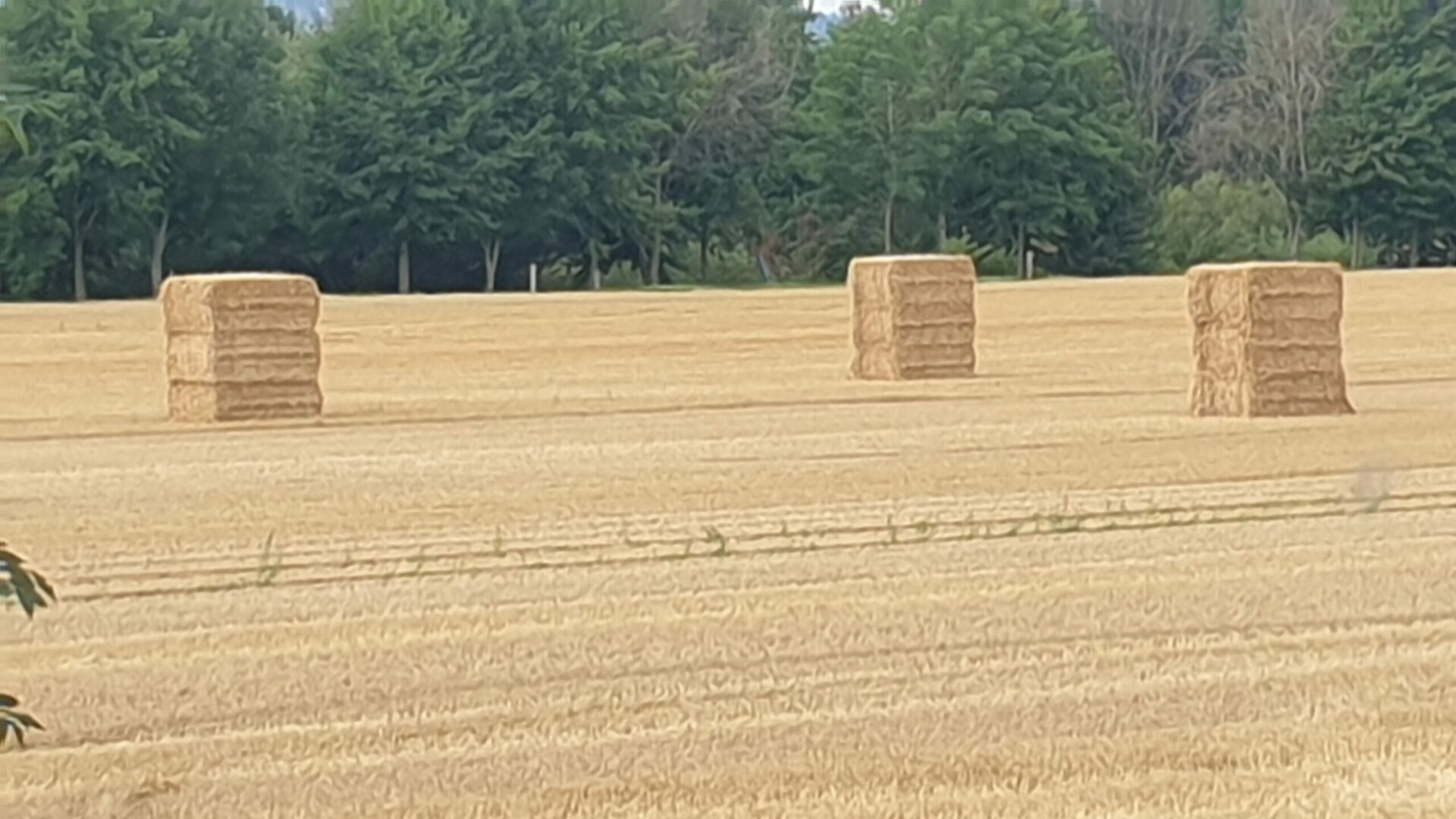 Viereckige Strohballen, warscheinlich weil sie platzsparender und unterdach sein müssen.